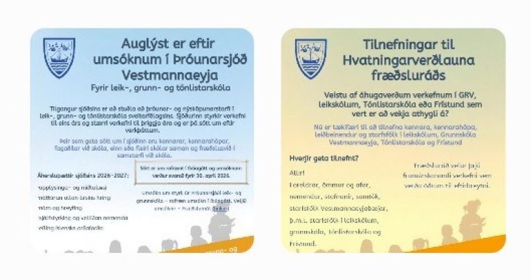 Vestmannaeyjabæjr auglýsir eftir starfsfólki 17 ára og eldra til sumarstarfa á vegum bæjarins fyrir árið 2026. Umsóknarfrestur til og með 19. apríl.