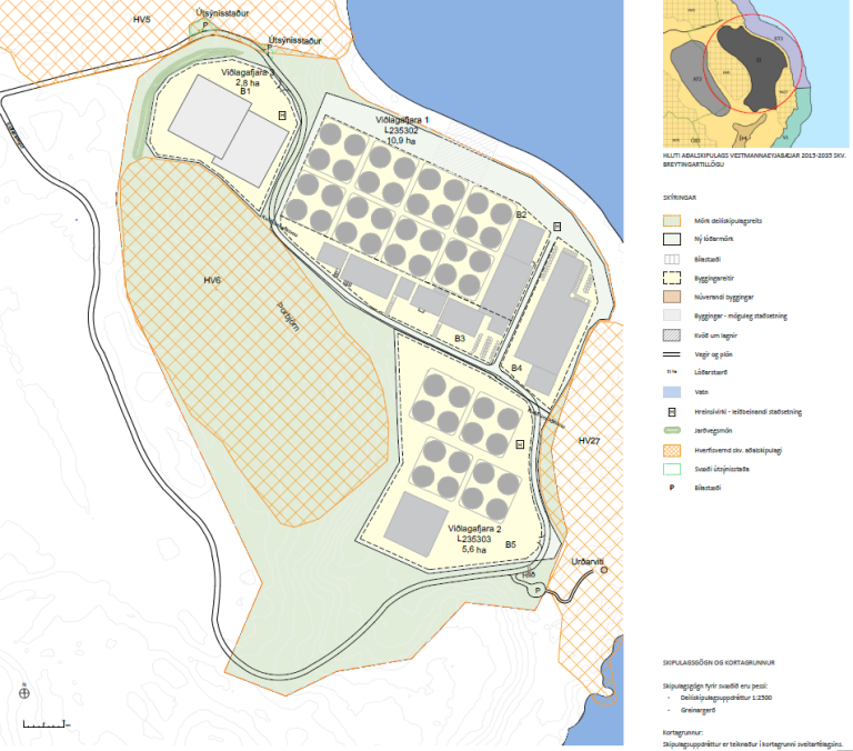 Í gildandi Deiliskipulagi iðnaðarsvæðis í Viðlagafjöru eru skilgreindar tvær lóðir og er uppbygging á annarri þeirra, lóð 1, langt á veg komin. Tillaga að breyttu deiliskipulagi gerir ráð fyrir nýrri lóð, lóð 3, nyrst á svæðinu þar sem gert verður ráð fyrir seiðaeldisstöð allt að 15.000 m2 að gólffleti. Gert er ráð fyrir mön umhverfis lóðina að norðanverðu við Eldfellsveg og að lega vegslóða að Viðlagafjöru frá norðri breytist.