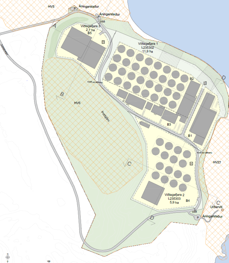 Í gildandi Deiliskipulagi iðnaðarsvæðis í Viðlagafjöru eru skilgreindar tvær lóðir og er uppbygging á annarri þeirra, lóð 1, langt á veg komin. Tillaga að breyttu deiliskipulagi gerir ráð fyrir nýrri lóð, lóð 3, nyrst á svæðinu þar sem gert verður ráð fyrir seiðaeldisstöð allt að 15.000 m2 að gólffleti. Gert er ráð fyrir mön umhverfis lóðina við Eldfellsveg og að lega vegslóða að Viðlagafjöru frá norðri breytist.