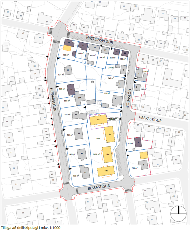 Auk breytinga við Boðaslóð 8-10 er eru helstu breytingar að gert er ráð fyrir viðbyggingu til suðurs við jarðhæð Hásteinsvegs 43, bílskúr við Boðaslóð 7 og að heimilt sé að lyfta mænisþaki við Hásteinsveg 39 til samræmis við aðliggjandi hús. Að lokum eru settir fram almennir skilmálar m.a. fyrir girðingar og skjólveggi, garðskúra og fleira fyrir deiliskipulagssvæðið.