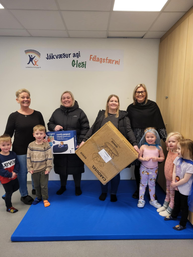 Þær systur Kristín og Unnur Dóra komu fyrir hönd félagsins og færðu okkur gjafir sem nýtast vel í skólastarfinu, sérstaklega fyrir nemendur sem eru taugsegin og glíma við skynúrvinnsluvanda.
