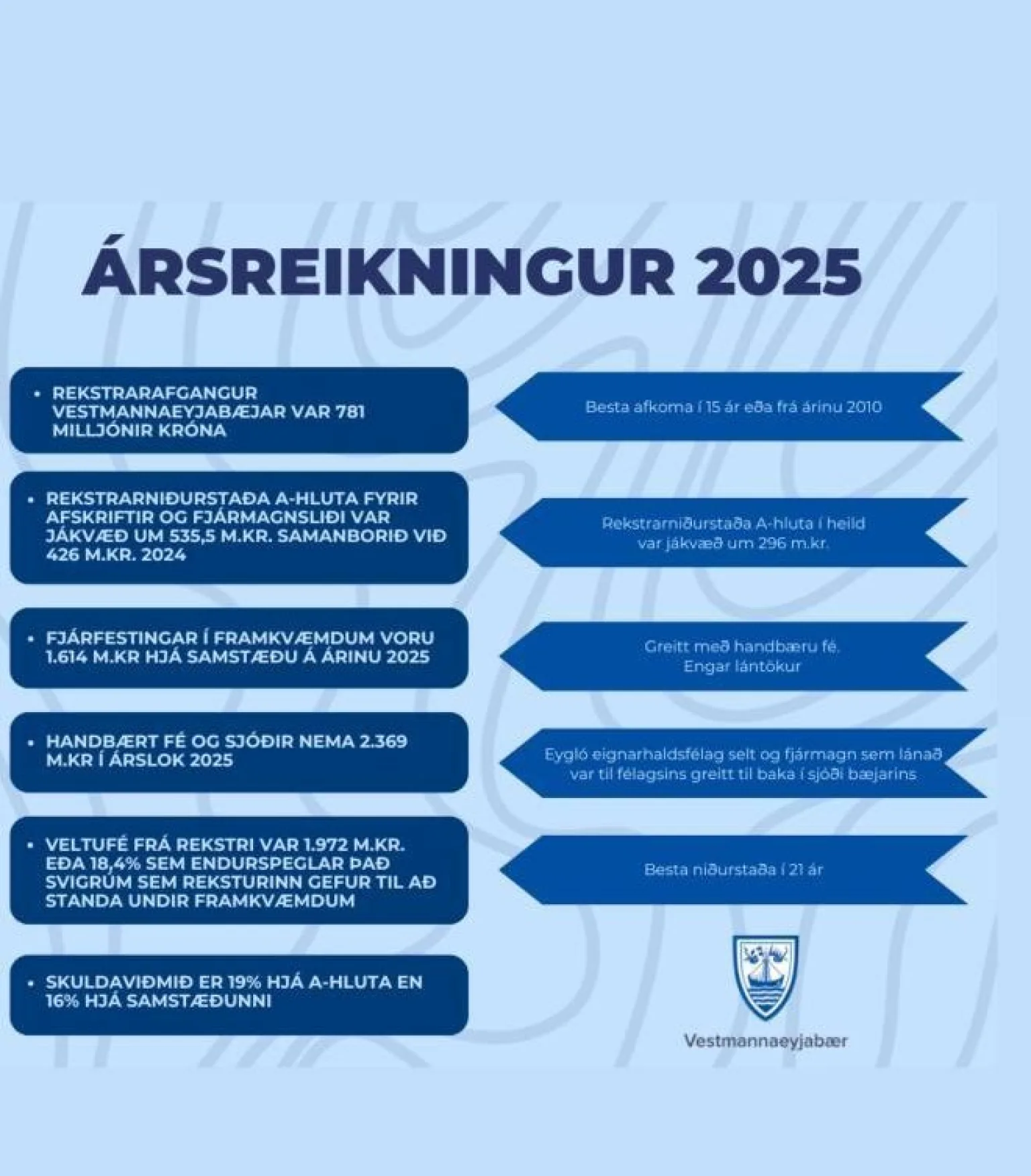 Aðalfundur Herjólfs er jafnan haldinn á milli umræðna um ársreikning Vestmannaeyjabæjar. Farið var yfir skýrslu stjórnar, ársreikning og önnur hefðbundin aðalfundarstörf. Framkvæmdastjóri fór jafnframt yfir verkefni sumarsins og þær breytingar sem eru framundan.
