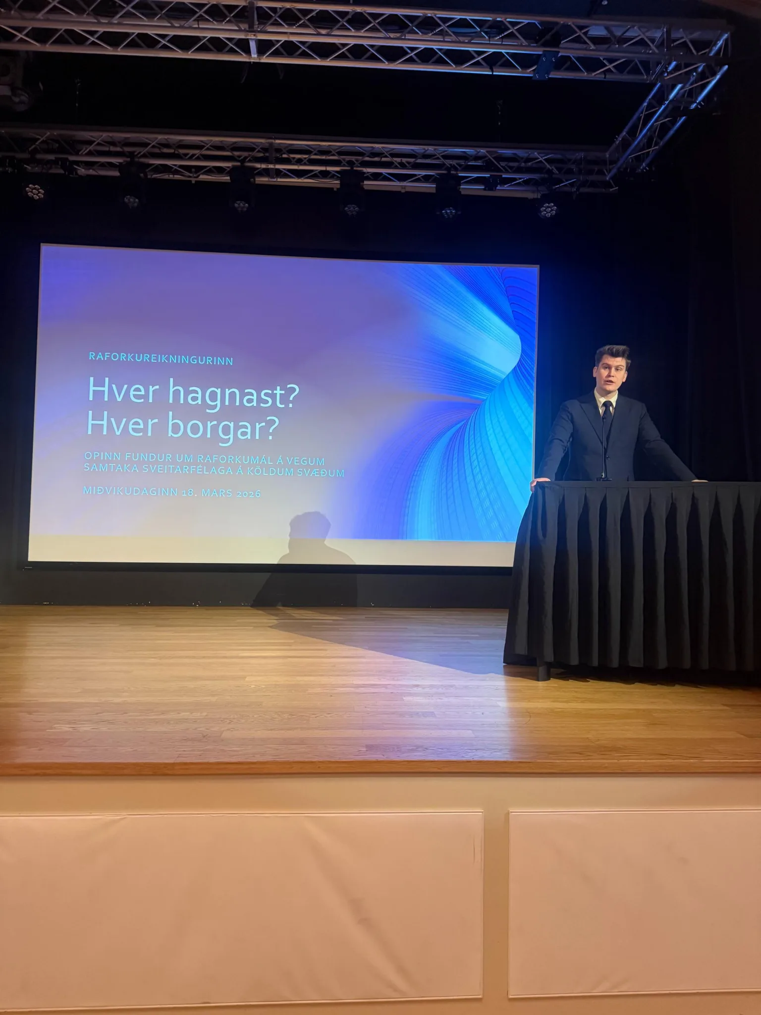 Orkufundurinn var með yfirskriftina: Rafmagnsreikningurinn – hver borgar, hver hagnast og hverju er hægt að breyta? Fundurinn heppnaðist vel, með áhugaverðum erindum frá öllum sem fara með þessi mál, auk ráðherra málaflokksins, og var hann vel sóttur.