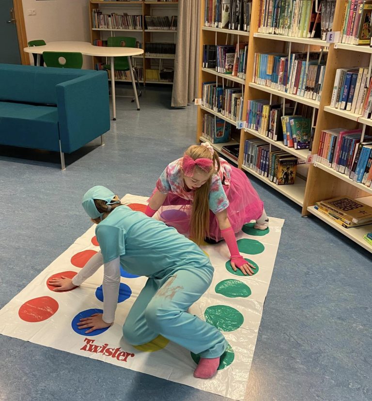 Á öskudaginn var boðið upp á glæpaborgina og twister á skólabókasafninu.
