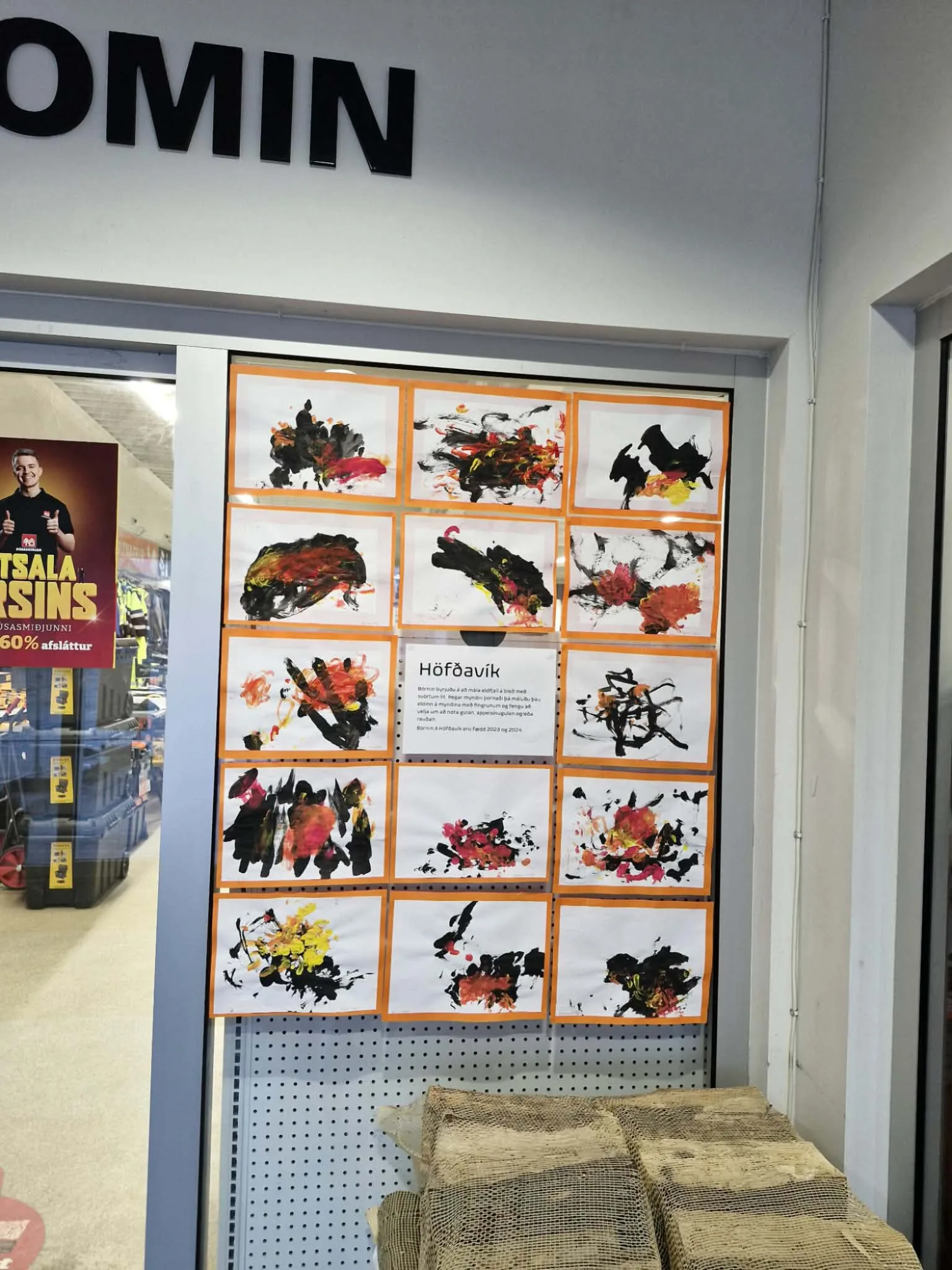 Deildirnar Höfðavík og Prestavík hengdu sín verk upp í Húsasmiðjunni.