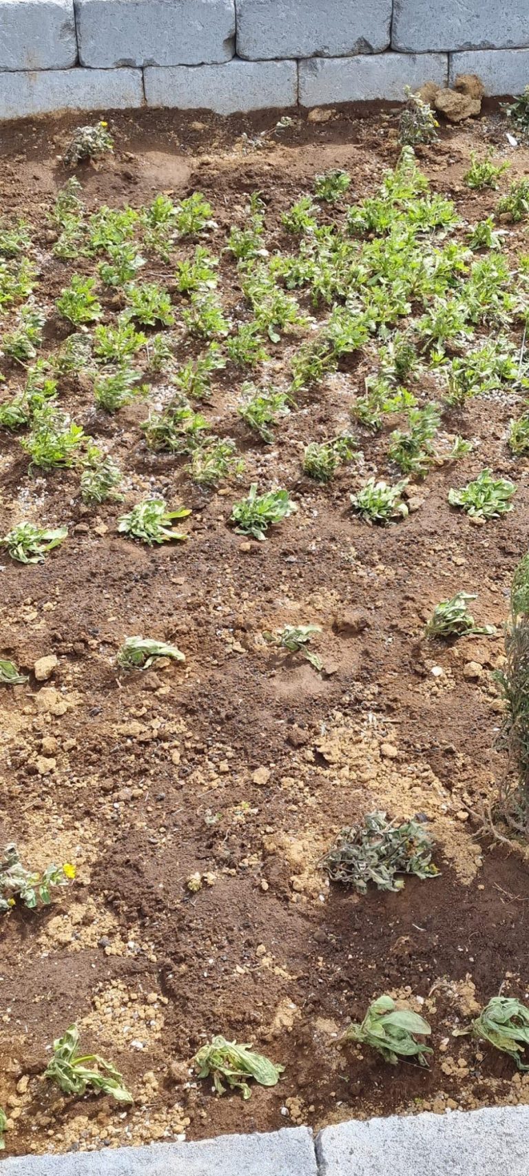 Mikið tjón varð á sumarblómunum í gær þar sem vindhraðinn fór upp í allt að 35 metra á sekúndu í mestu hviðunum.