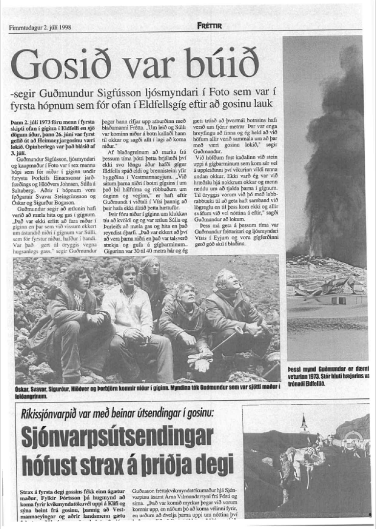 Þessi vösku menn fóru ofan í gíginn á Eldfelli þann 2. júlí 1973 og gosinu var opinberlega lokið 3. júlí 1973.