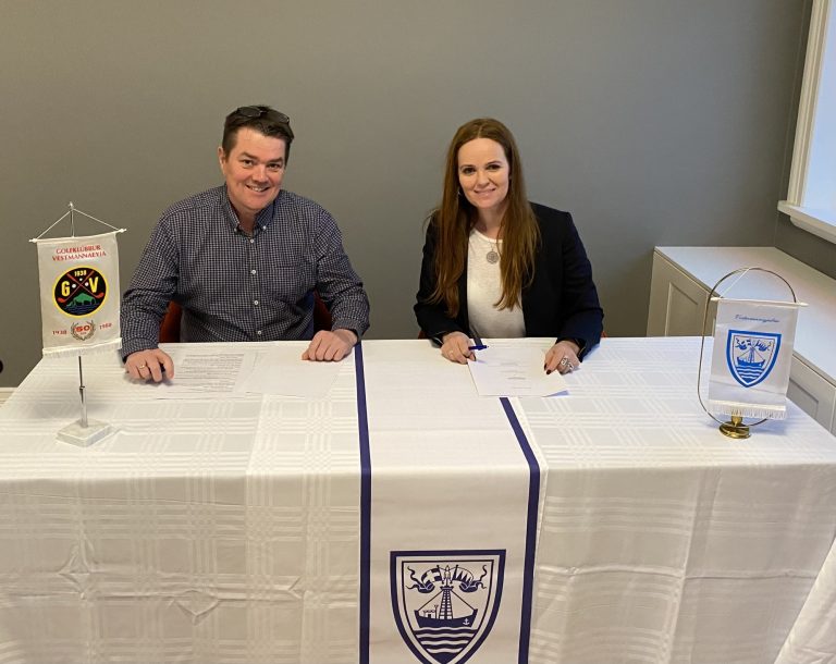 Í byrjun desember undirrituðu þau Íris Róbertsdóttir, bæjarstjóri og Sigursveinn Þórðarson, formaður Golfklúbbs Vestmannaeyja, samning um uppbyggingu á aðstöðu og nýbyggingu við Golfskála Vestmannaeyja.