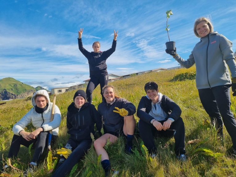 Grunnskóli Vestmannaeyja fékk nú í haust 450 plöntur frá Yrkju sem er Sjóður æskunnar til ræktunar landsins.