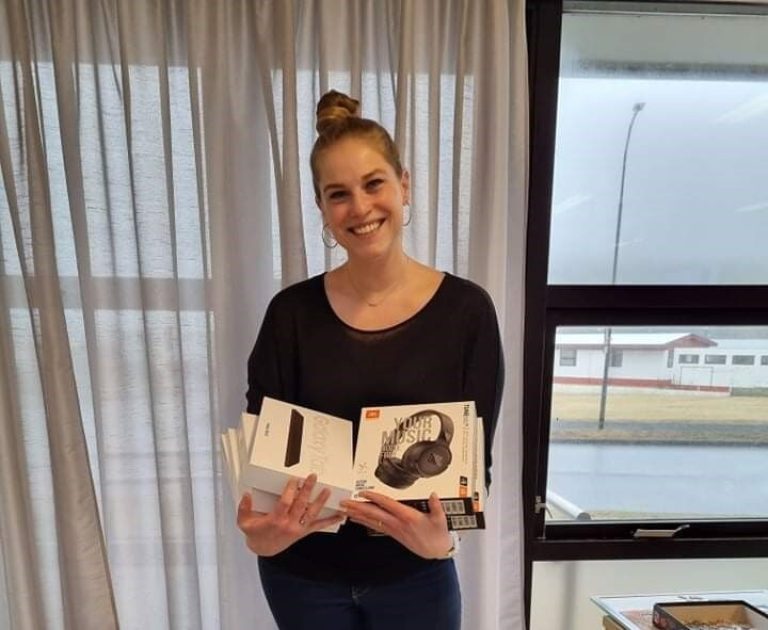 Hollvinasamtök Hraunbúða gáfu á dögunum tvær spjaldtölvur, hulstur og tvenn þráðlaus heyrnartól til dagdvalarinnar