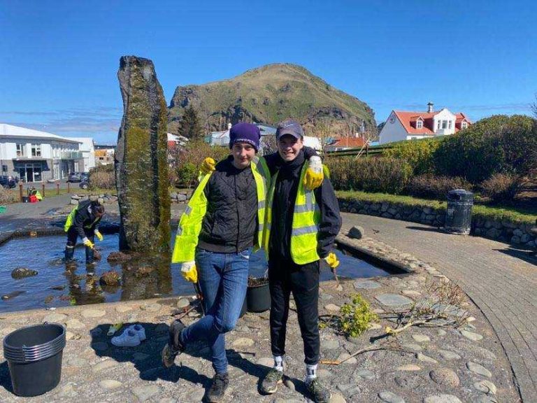 Nú er unnið hörðum höndum að því að fegra bæinn okkar og halda honum snyrtilegum.