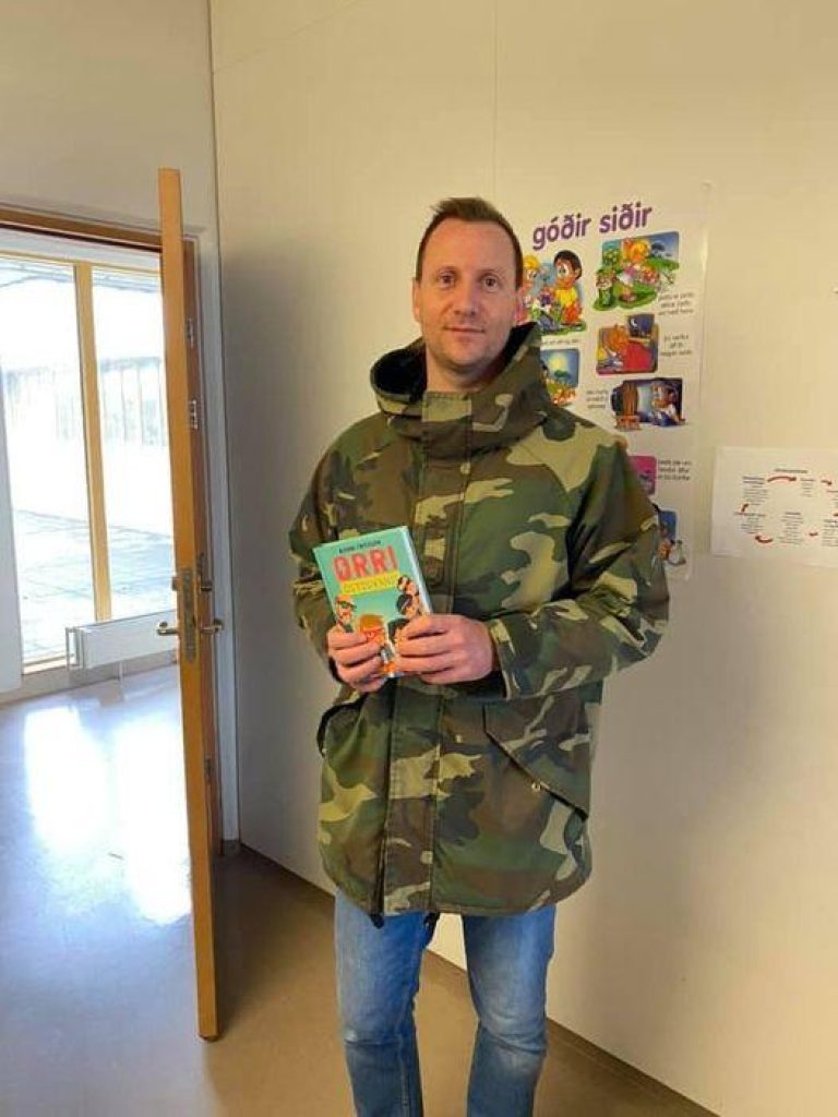 Bjarni Fritzson kom færandi hendi til okkar i GRV í gær. Hann gaf okkur bekkjarsett af bókunum sínum Orri óstöðvandi.