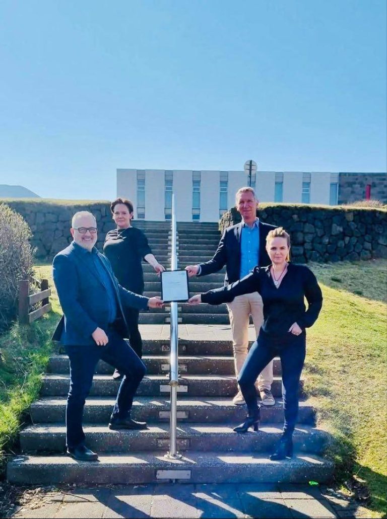 Í dag afhenti Sigurður M Harðarson frá iCert vottunarstofu, Írisi Róbertsdóttur, bæjarstjóra, skírteini til staðfestingar á vottun jafnlaunastjórnunarkerfis Vestmannaeyjabæjar.