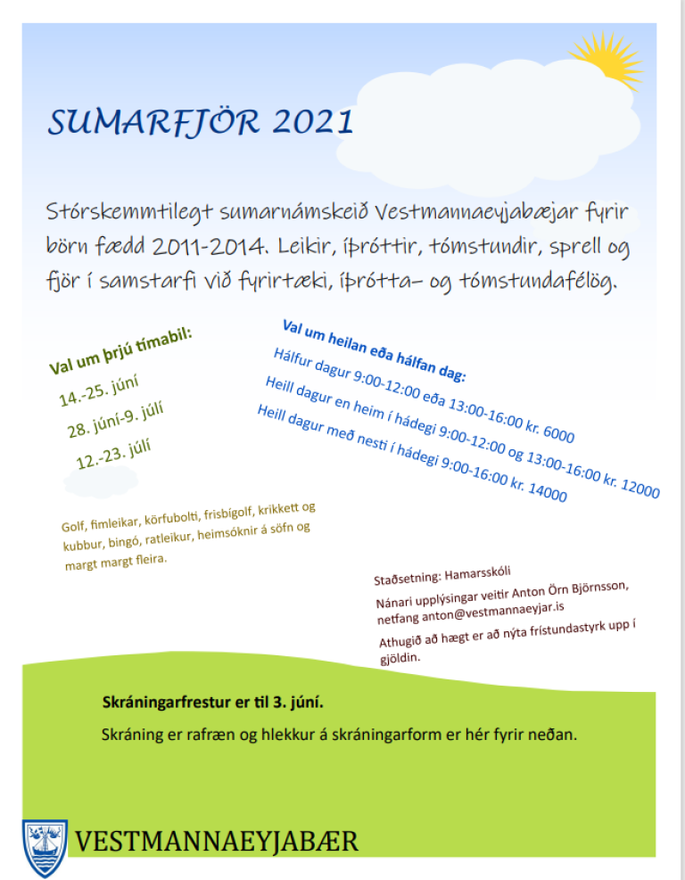 Stórskemmtilegt sumarnámskeið Vestmannaeyjabæjar fyrir börn fædd 2011-2014.