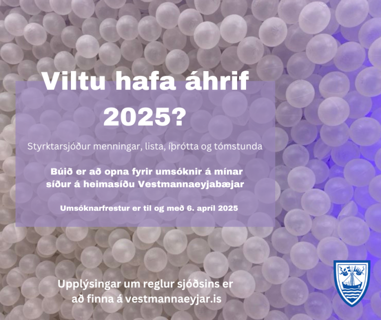Vestmannaeyjabæjr auglýsir eftir starfsfólki 17 ára og eldra til sumarstarfa á vegum bæjarins fyrir árið 2025. Umsóknarfrestur til og með 21. apríl.