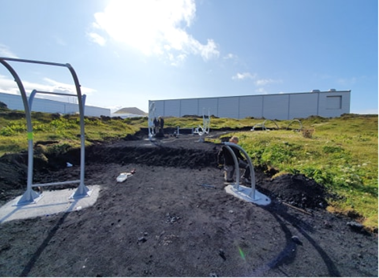 Framkvæmdir standa nú yfir við gerð hreystivallar við Íþróttahúsið.