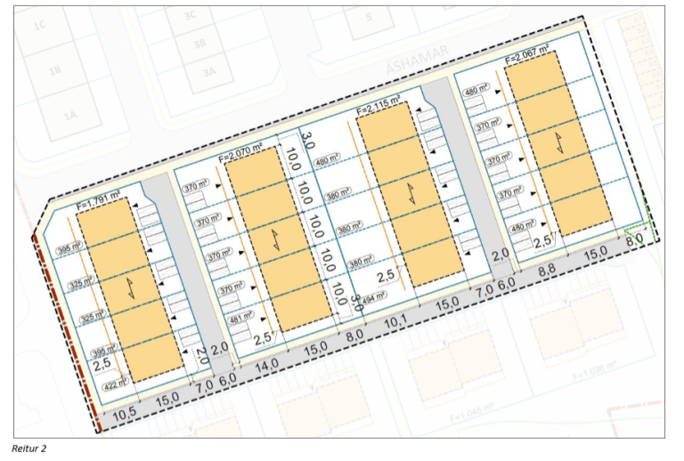 Um er að ræða fjórar raðhúsalengjur með fimm íbúðum hver, samtals 20 íbúðir.