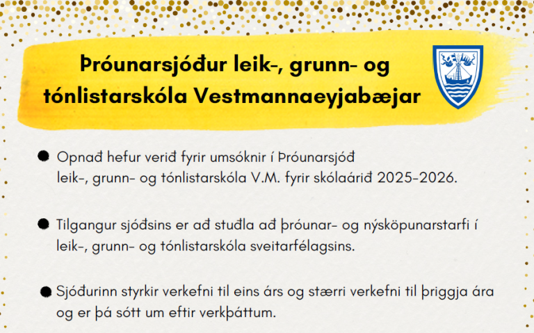 Opnað hefur verið fyrir umsóknir í Þróunarsjóð leik- grunn- og tónlistarskóla Vestmannaeyjabæjar fyrir skólaárið 2025-2026