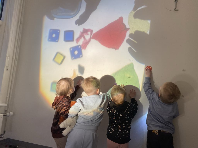 Um daginn nýttu nemendur og kennarar í Kirkjugerði rigninguna og dimman morgun til þess að leika sér með ljós og skugga