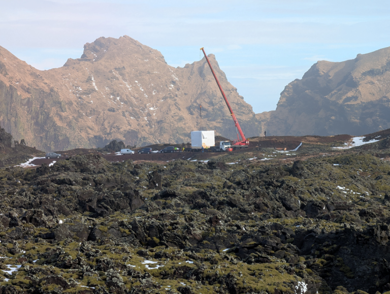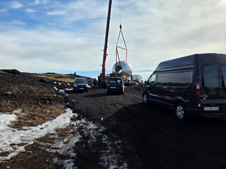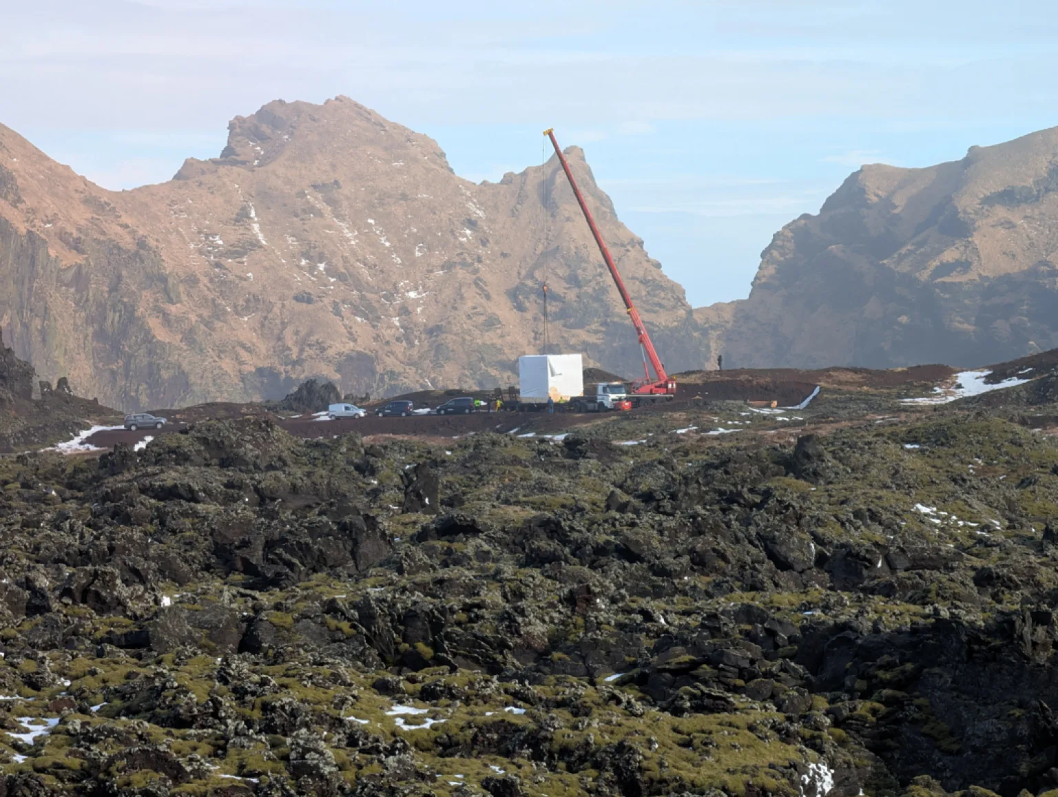 Mikil spenna ríkir fyrir fyrri áfanga listaverks Olafs Eliassonar. Framkvæmdir standa nú yfir og felst þessi áfangi í uppsetningu skála sem var komið fyrir á sínum endanlega stað föstudaginn 27. mars síðastliðinn.