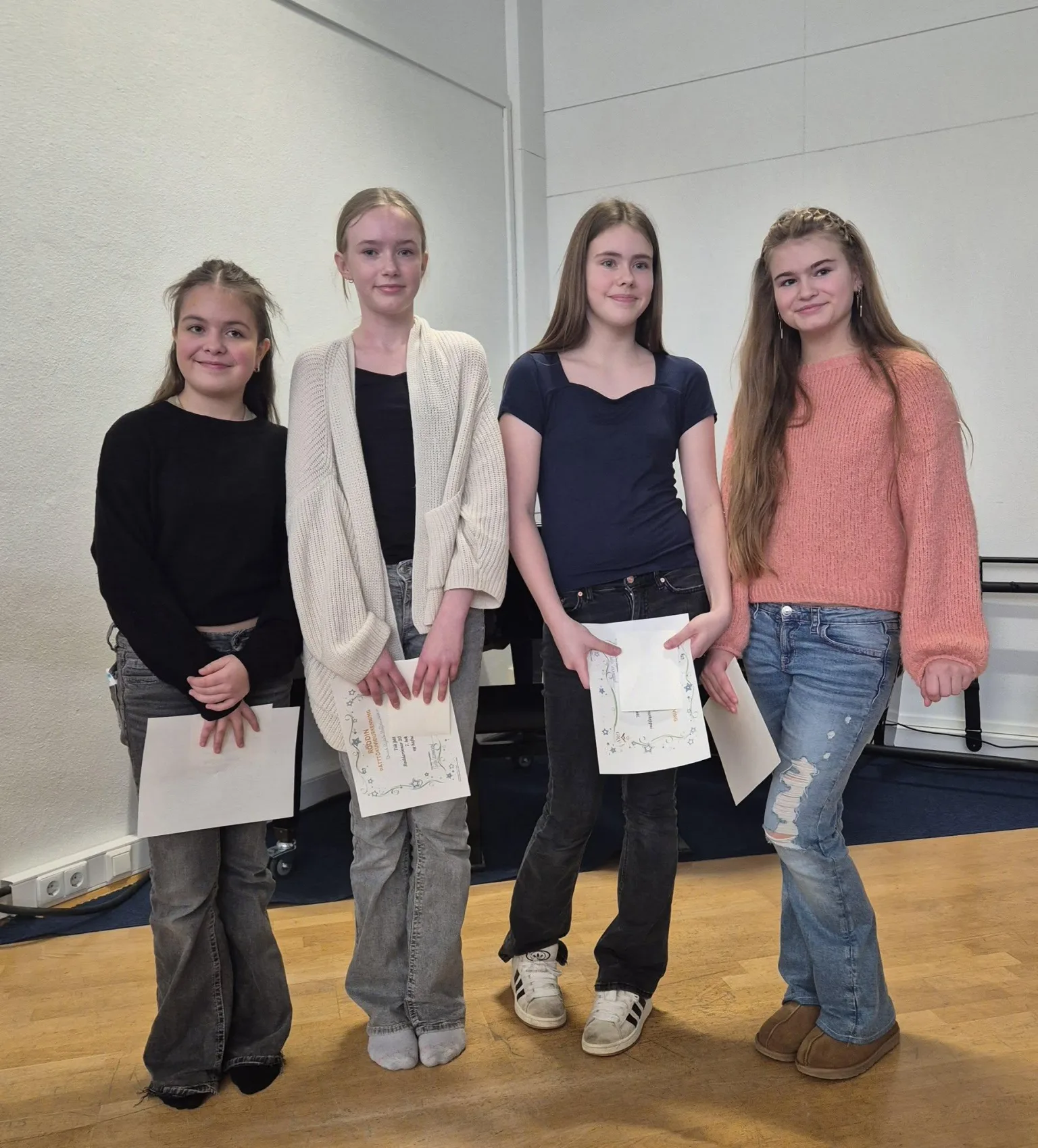 Að lokum tókst það og 1. - 3. sæti hrepptu þær Bríet Björk Hafþórsdóttir, Caritas Rós Tinnudóttir og Kolbrá Njálsdóttir. Í 4. sæti lenti Guðbjörg Karlsdóttir og er hún varamaður lesarana.