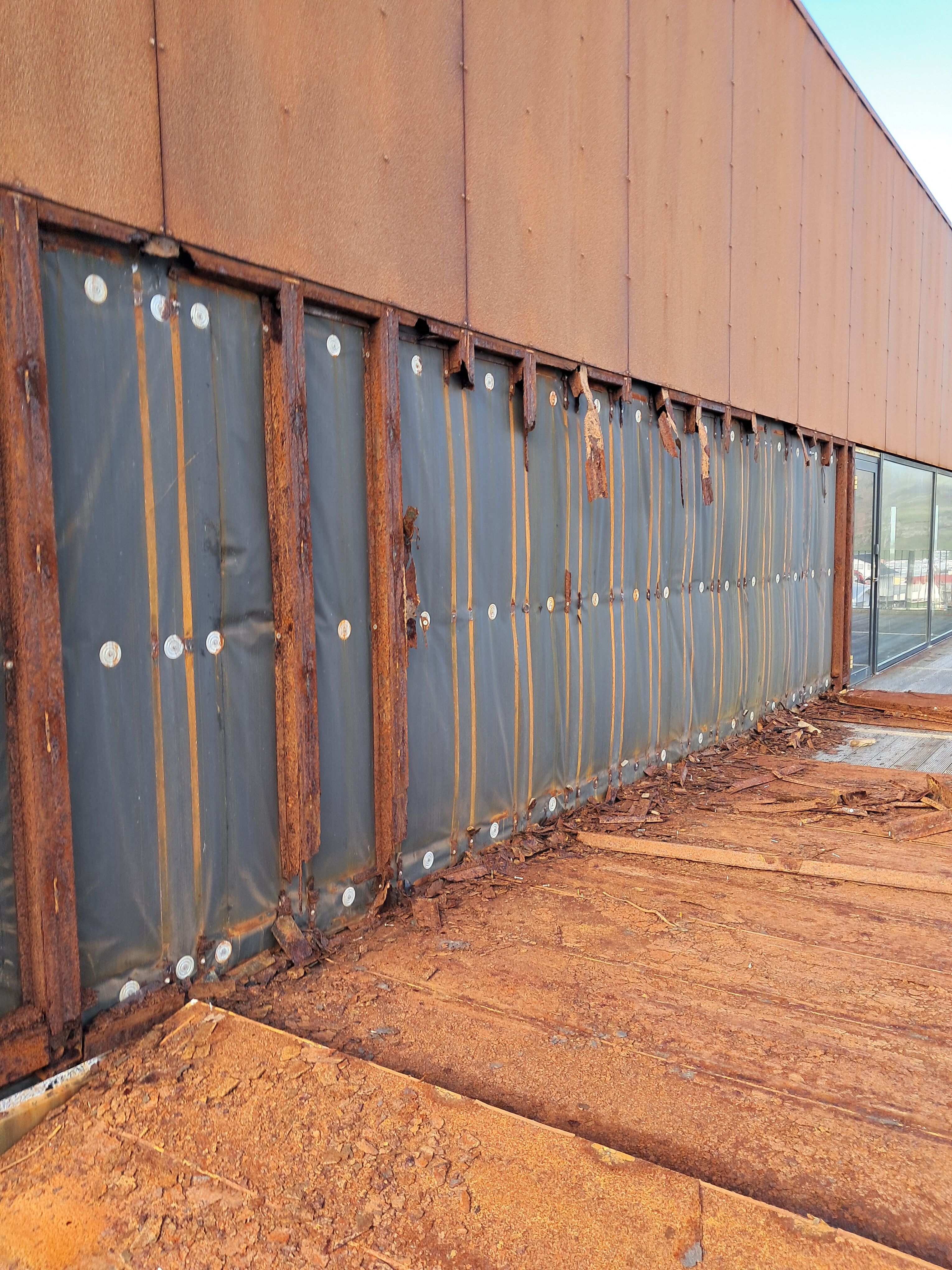 Eins og flestum er kunnugt er klæðning í mjög slæmu ásigkomulagi á ákveðnum hliðum hússins. Hafin er vinna við að fjarlæga klæðningar þar sem hún er verst farin, einkum á norður- og vesturhlið hússins. Til bráðabirgða hefur verið sett upp krossviður yfir veturinn, en í framhaldinu þarf að ráðast í varanlegar aðgerðir til að tryggja útlit og öryggi byggingarinnar.