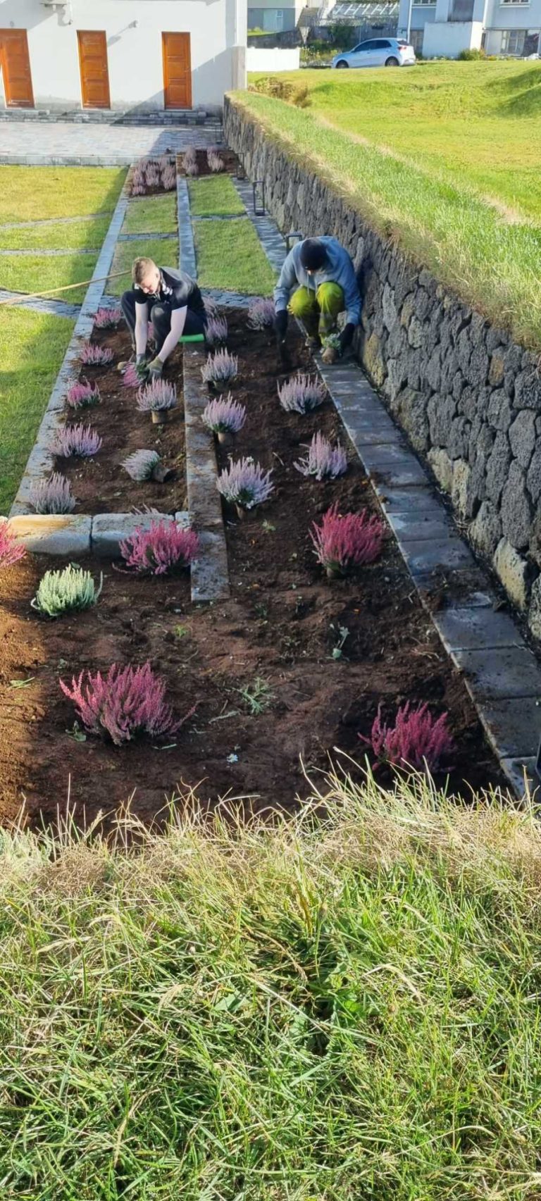Útplöntun á haustblómunum gekk vel undir stjórn Eiríks Sælands og félaga eins og sjá má á þessum myndum.