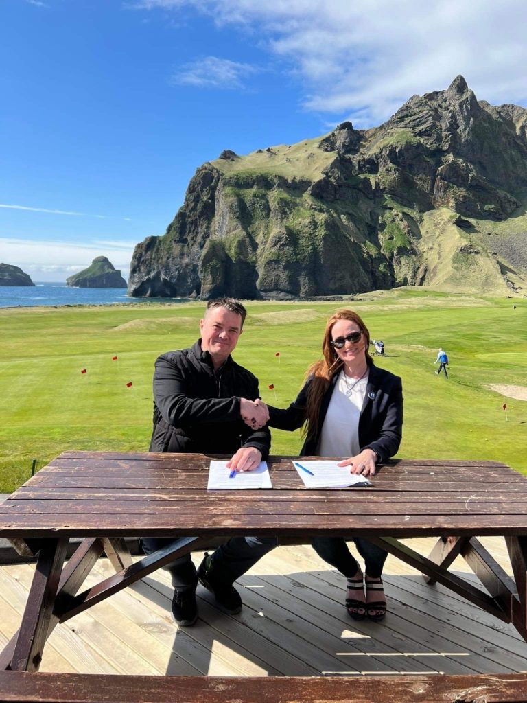 Í gær, þriðjudaginn 10. maí sl., undirrituðu þau Íris Róbertsdóttir, bæjarstjóri og Sigursveinn Þórðarson, stjórnarformaður Golfklúbbs Vestmannaeyja, tveggja ára samstarfssamning um útfærslu íþróttastarfs í Golfklúbbi Vestmannaeyja og aðra þjónustu sem klúbburinn mun veita.