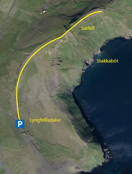 Gangan hefst á bílastæðinu við Sæfell. Þaðan er hægt að ganga bæði beint upp á Sæfell af bílastæðinu eða hafa viðkomu í Lyngfellisdal og ganga þaðan upp á Sæfell.