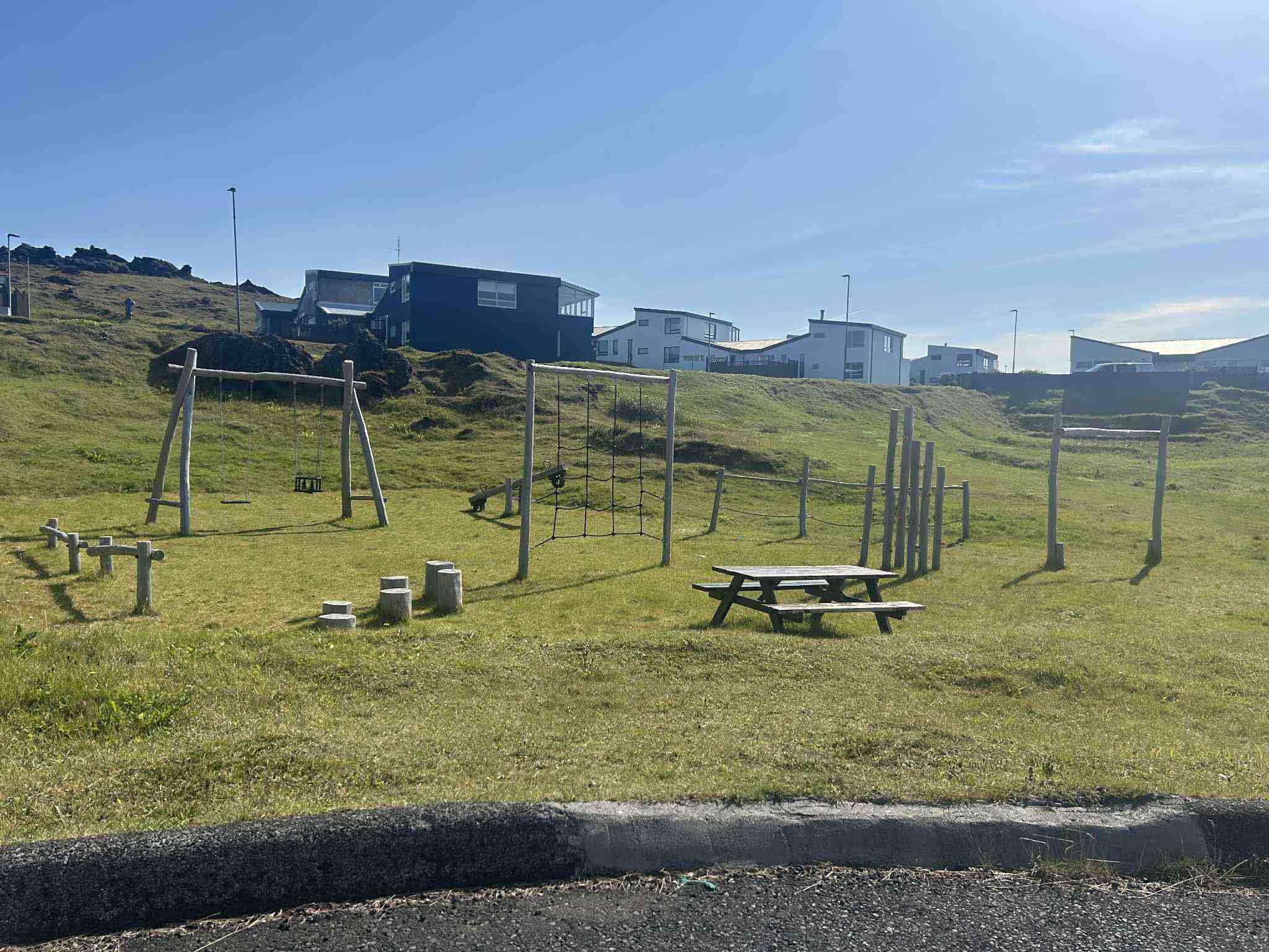 Við leikskólann Sóla er afgirt leiksvæði sem opið er almenningi eftir að skólastarfi lýkur á daginn.